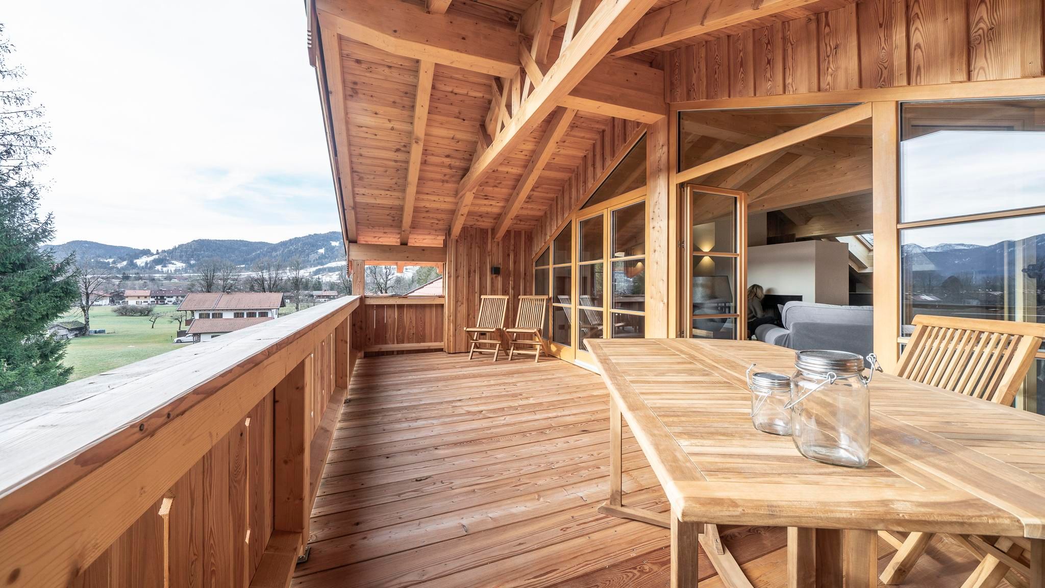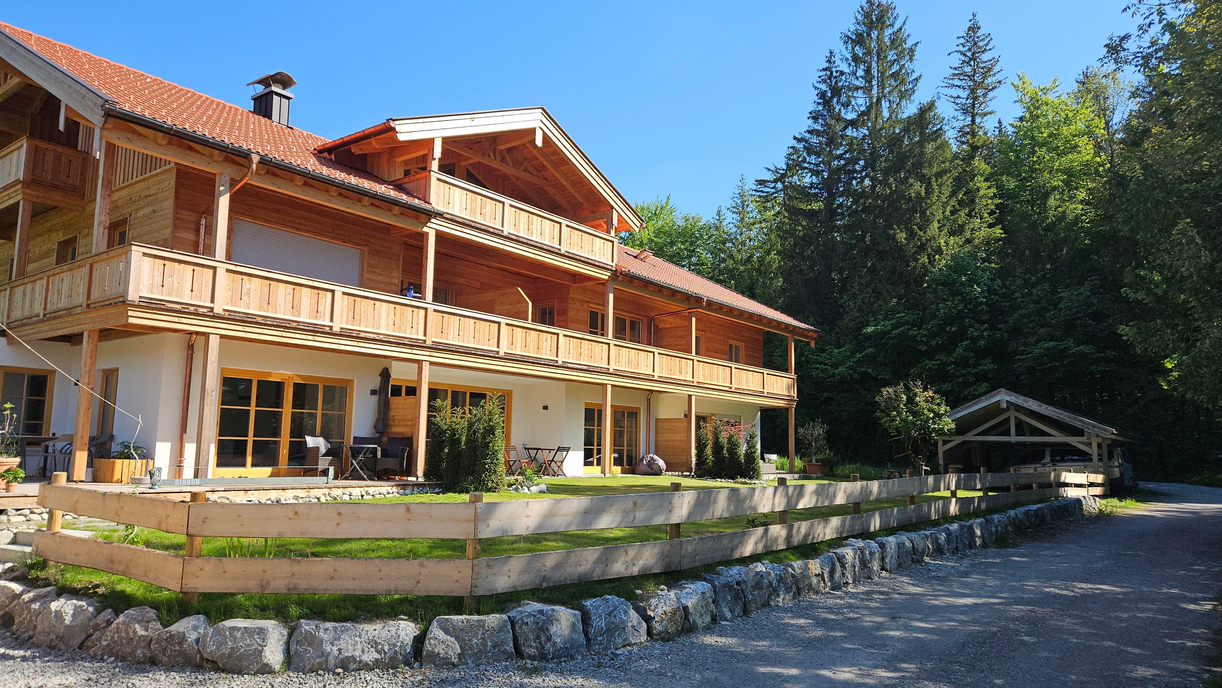 Our luxurious holiday apartment is located about 800m from the center of Lenggries amidst older, magnificent farms. Our chalet is situated in a secluded location in the district of Anger. It takes about 10 minutes on foot to reach Lenggries train station. You can embark on cycling tours or mountain and hiking tours directly from our chalet. You can safely leave your car in our courtyard. The town center of Lenggries, with numerous daily needs shops, is also about 10 minutes on foot. The Brauneck ski area is accessible by car in about 5 minutes.