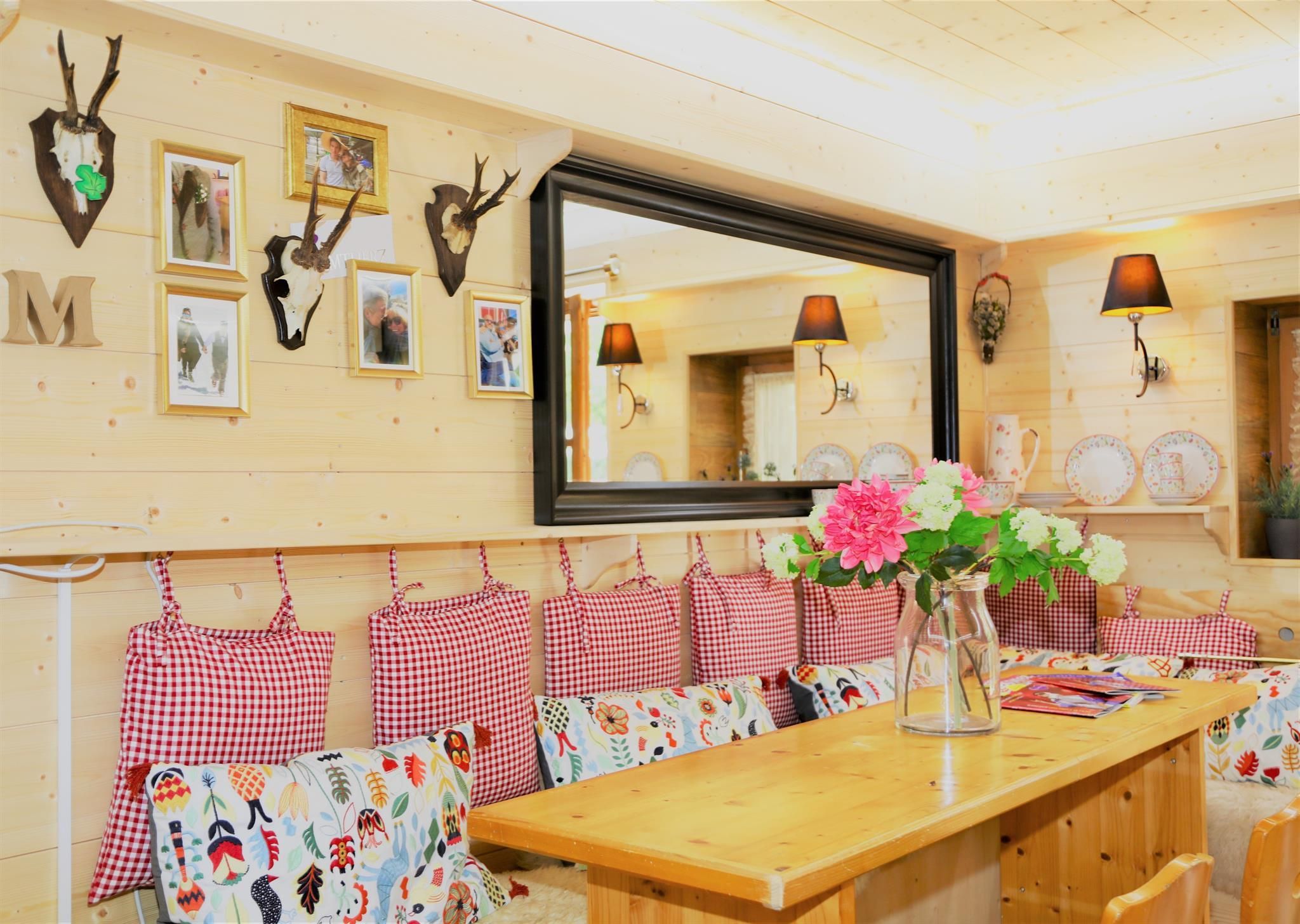 A cabin feeling and plenty of space for holidays, relaxation and everything you could wish for. The apartment has been lavishly renovated, the walls with natural wood from the Tegernseer Land, designer lamps, skins, a lot of carpentry, kitchen with dishwasher, oven, coffee machine, large fridge, bathroom with bathtub and shower, hallway with large built-in wardrobe. Everything has its own lighting concept, from daylight to romantic. A small terrace where you can drink your glass of wine in the morning and in the evening, cosy and with a view of the snow groomers who prepare the slopes at night in winter. A special feeling of comfort, when you crawl under the warm down duvets and in the morning, take a first look at the Garlant again...:-)