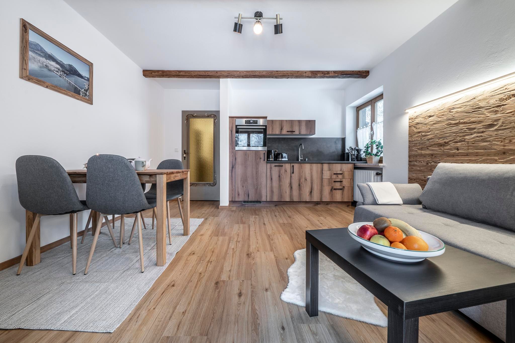 Our holiday home Hohenwiesen is located in the district of Hohenwiesen south of Lenggries. The holiday apartments Sylvenstein & Schrombach are on the 1st floor and were newly renovated in 2022.