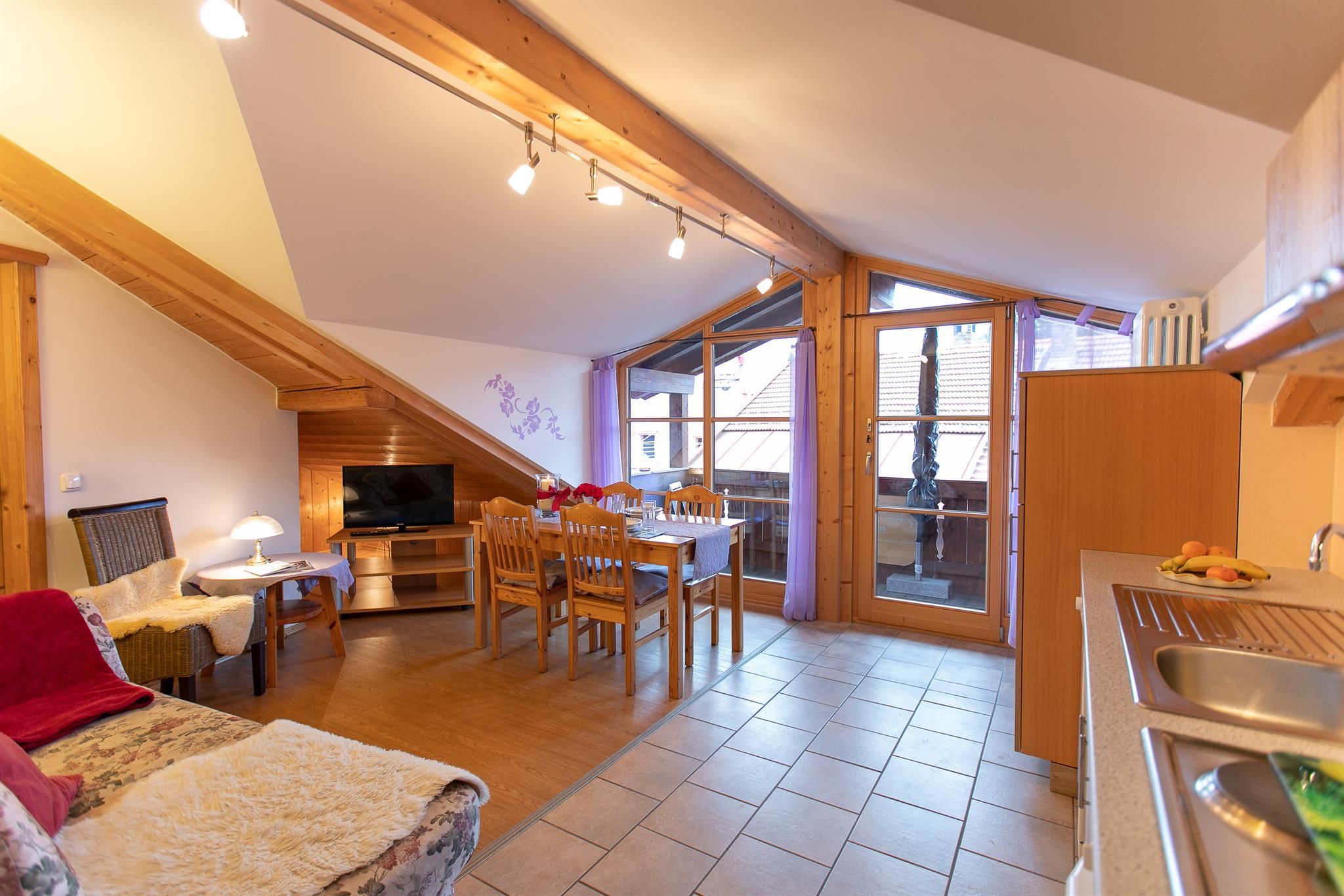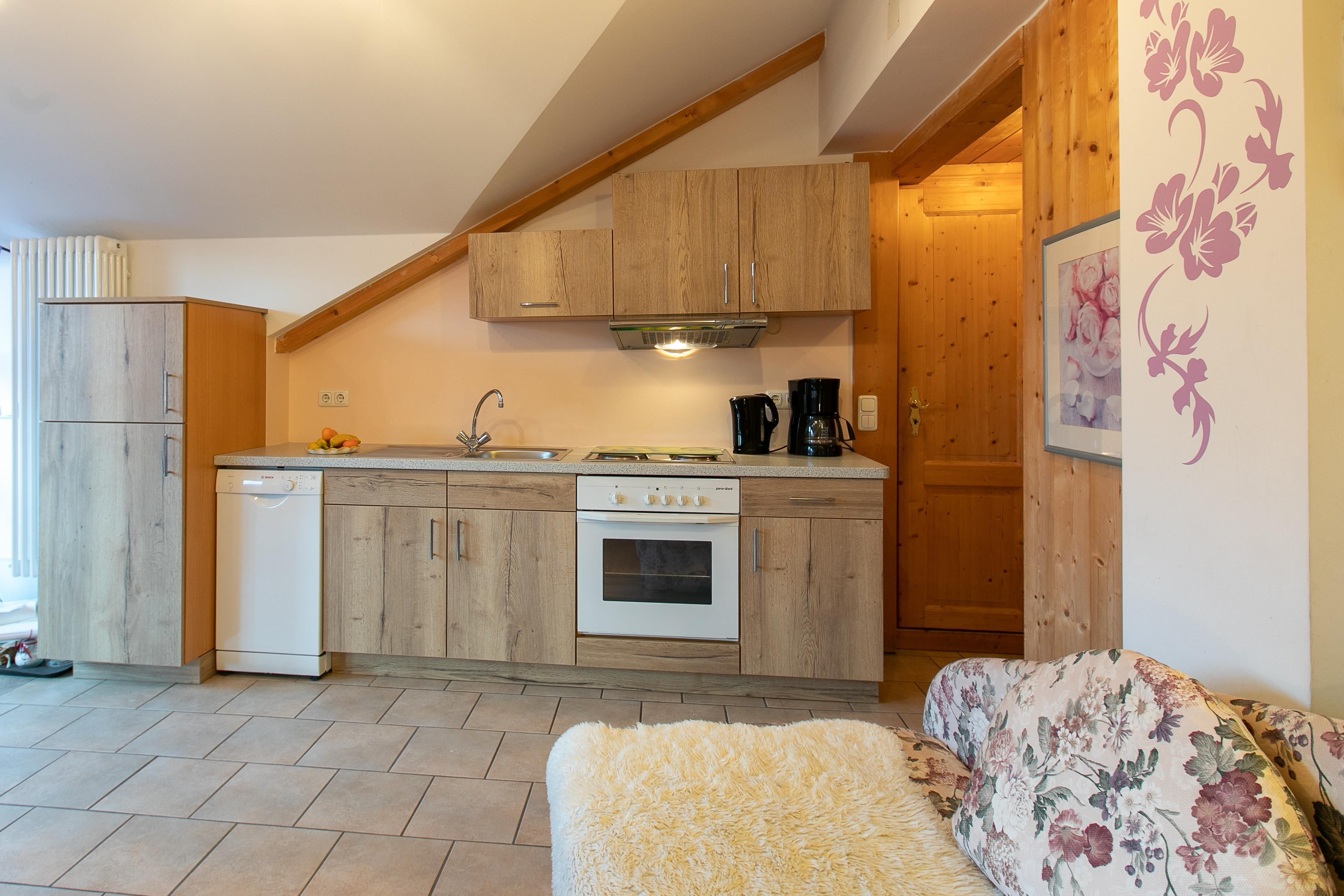 Welcome to our vacation apartment for a pleasant stay, featuring south and west balconies. The approximately 75 sqm large apartment offers a living-dining area and a fully equipped kitchen with a dishwasher, refrigerator with freezer, electric stove, toaster, cable flat-screen television, 2 separate bedrooms (double beds), one with a pine wood bed, large shower, WC, child-friendly equipment for our little guests (high chair, crib), luggage lift, 1 south balcony, 1 west balcony, and parking directly at the house. I look forward to welcoming you. Classification 532 points (4 stars 555)