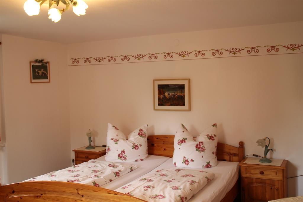 Ruhiger und familienfreundlicher, kleiner Bauernhof mit gemütlich und komfortabel eingerichteten 4 Sterne Ferienwohnungen mit Dusche, WC, Küche(Spülmaschine u. Mikrowelle),Wohnzimmer( Kabel-TV)und Südbalkon. Babyausstattung, Terrasse, Liegewiese, Parkplatz, Garage, Leihräder, Spielplatz mit gr. Trampolin und Streicheltiere vorhanden. Waschmaschine und Trockner, sowie Allergiebetten. Allgemeiner gemütlicher Aufenthaltsraum. Auf Wunsch erwartet Sie zur Anreise ein gefüllter Kühlschrank. Hunde auf Anfrage. Brötchenservice. Hausprospekt. Frühstück auf Anfrage.
