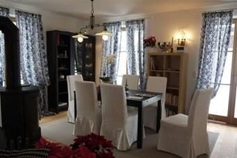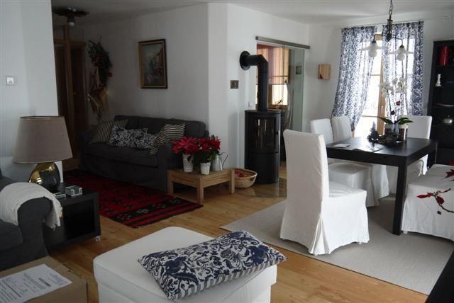 Ferienwohnung 90m² im Erdgeschoss, 1 Doppelzimmer mit Himmmelbett, 1 Doppelzimmer mit getrennten Betten, 1 Bad mit Badewanne und Dusche, Föhn und Handtuchtrockner, 1 seperate Toilette, 1 Wohnzimmer mit Esstisch, Fernseher und Schwedenofen, 1 Küche mit Spülmaschine, Kühl- und Tiefkühlschrank, Induktionsherd mit Backofen; Espresso- und Kaffeemaschine. Eine große Terrasse mit Grill und 1 Car-Port, sowie ein abschließbarer Kellerraum für Fahrräder oder Ski stehen ebenso zur Verfügung. Die Kurtaxe wird zuzüglich berechnet.