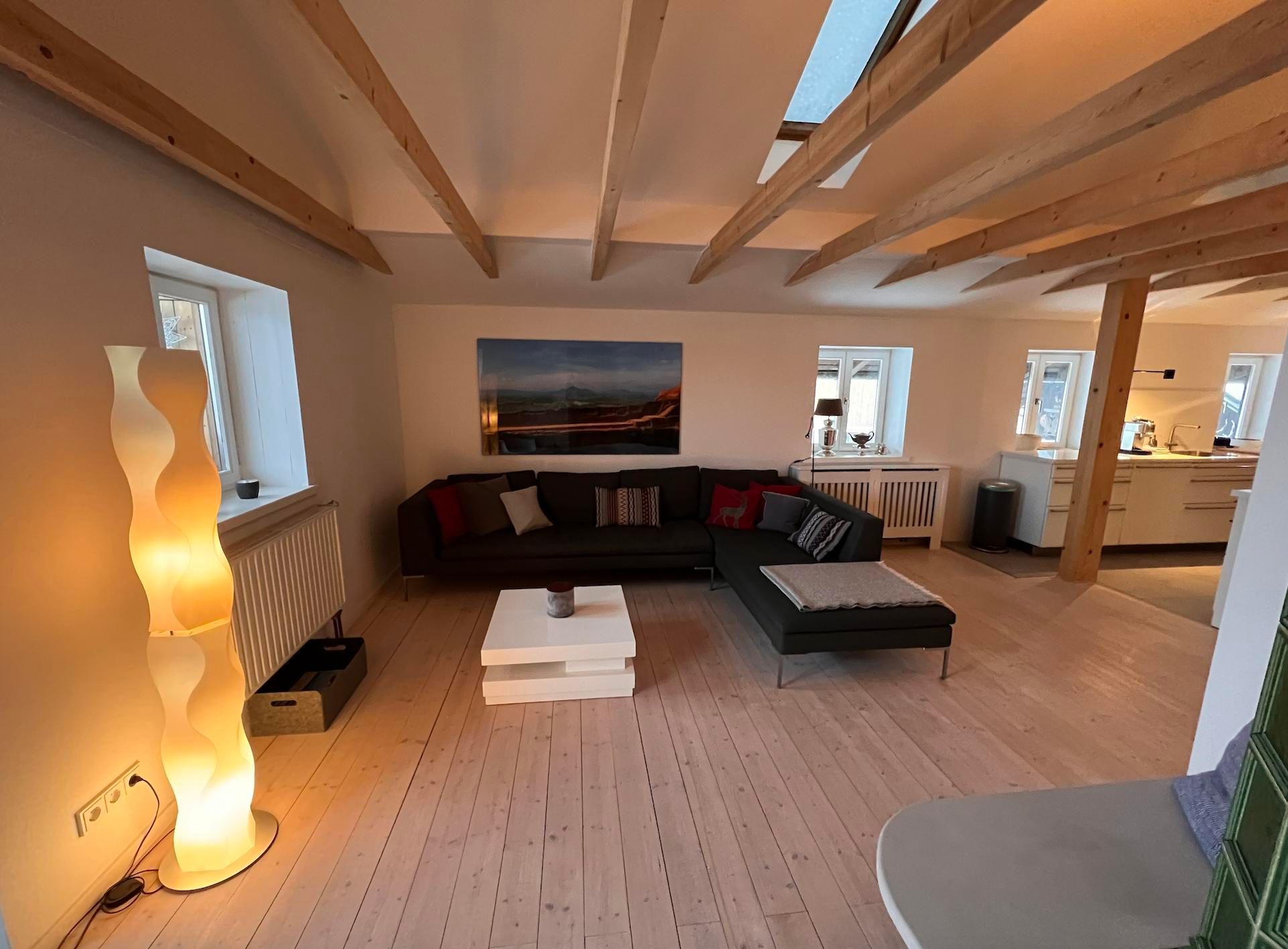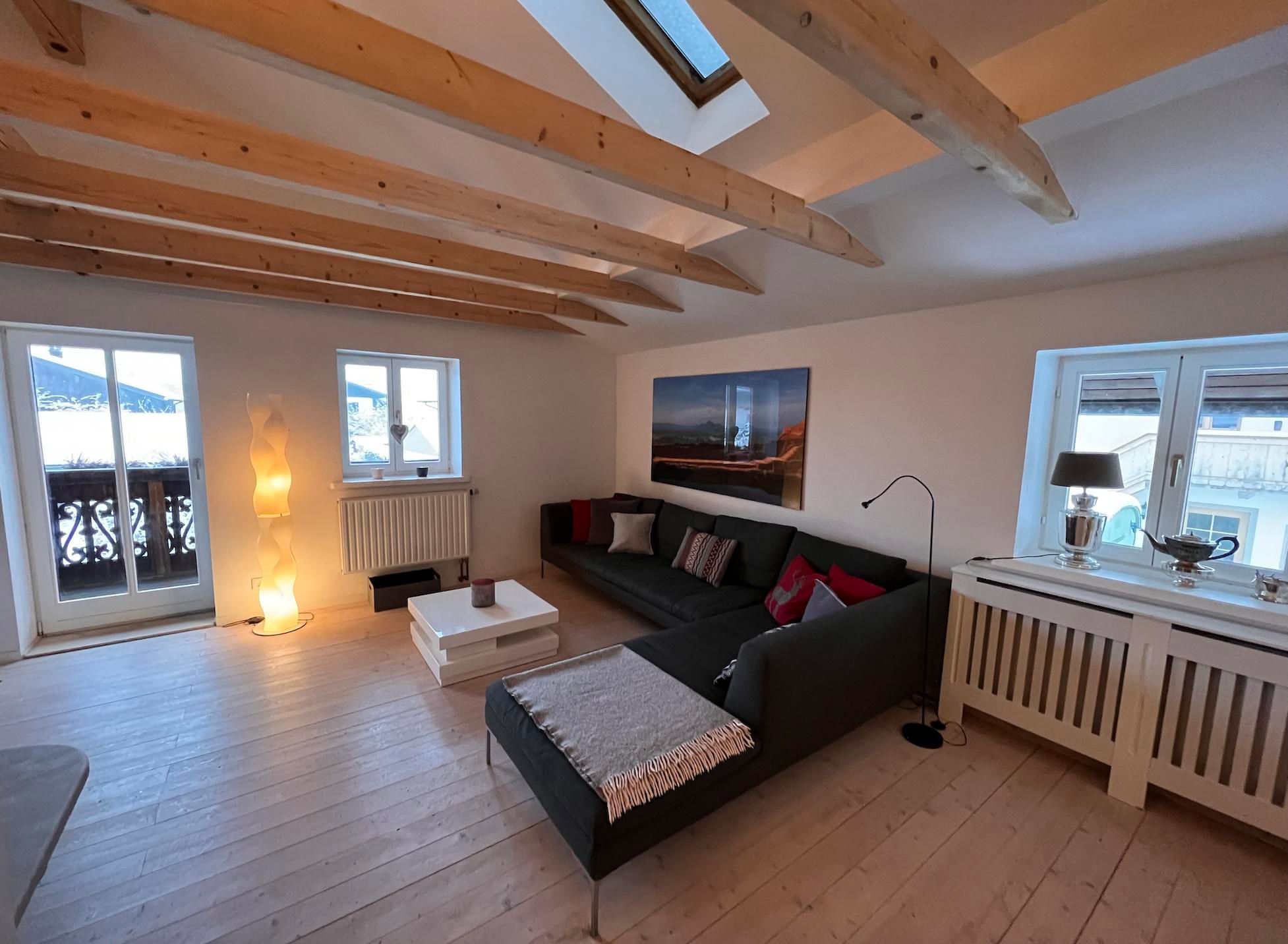traumhafte Ferienwohnung mit Bergblick, frisch renoviert! Das charmante und frisch renovierte Zweifamilienhaus liegt in einer ruhigen Querstraße zum Fuße des Braunecks, in unmittelbarer Nähe zu Wanderwegen und Loipen. Vermietet wird das großzügig ausgebaute und gemütliche Obergeschoß mit einem offenen Wohn-Koch-Essraumkonzept + wärmenden Kachelofen , großes Eltern-Schlafzimmer, weiteres Gästezimmer und einem großem Bad, getrenntes WC, Balkon mit wunderschönem Blick in die Berge, Garten mit Grill - einfach relaxen und Ruhe genießen