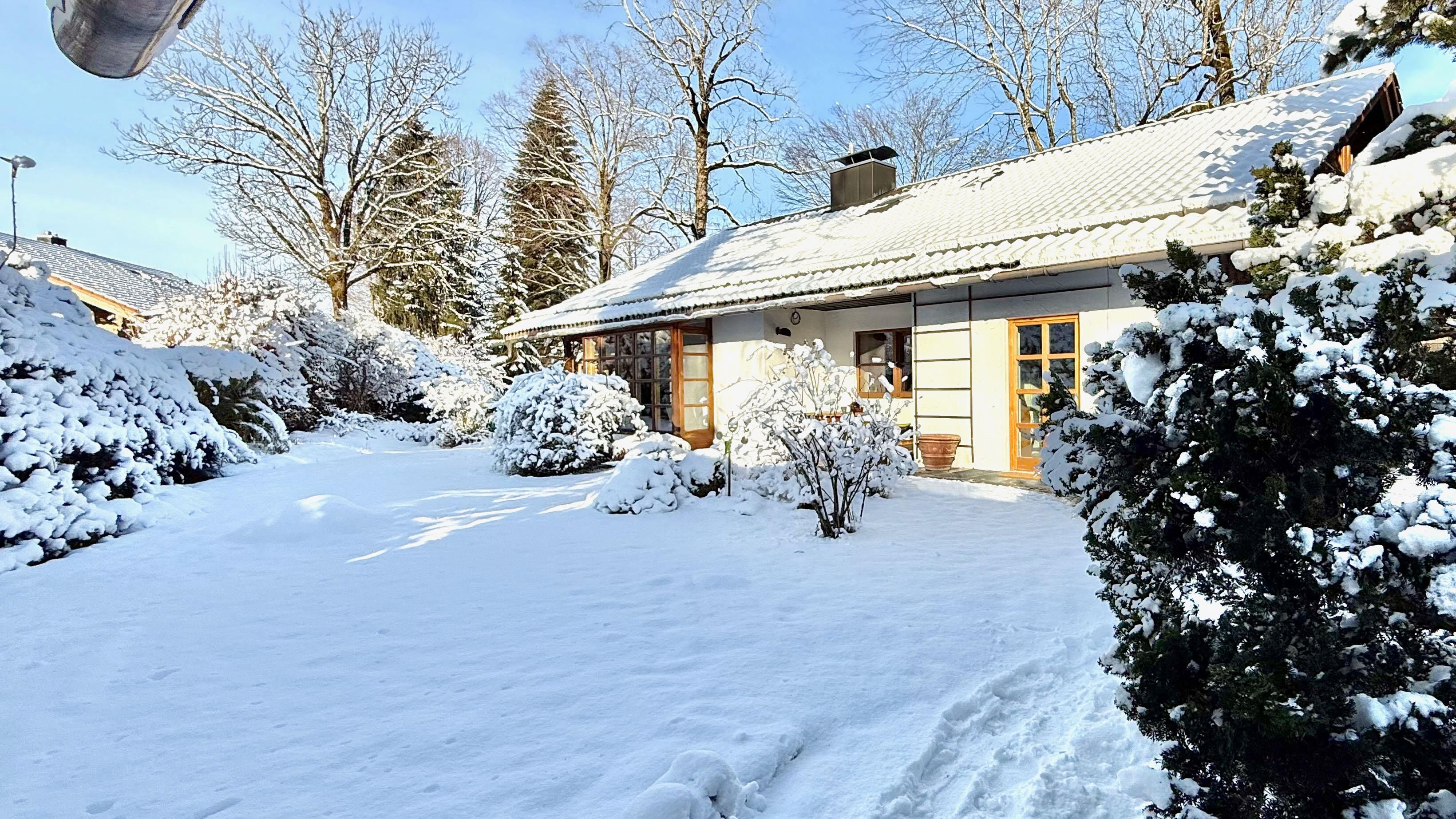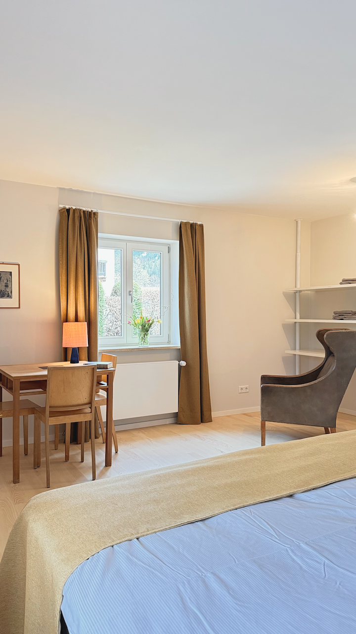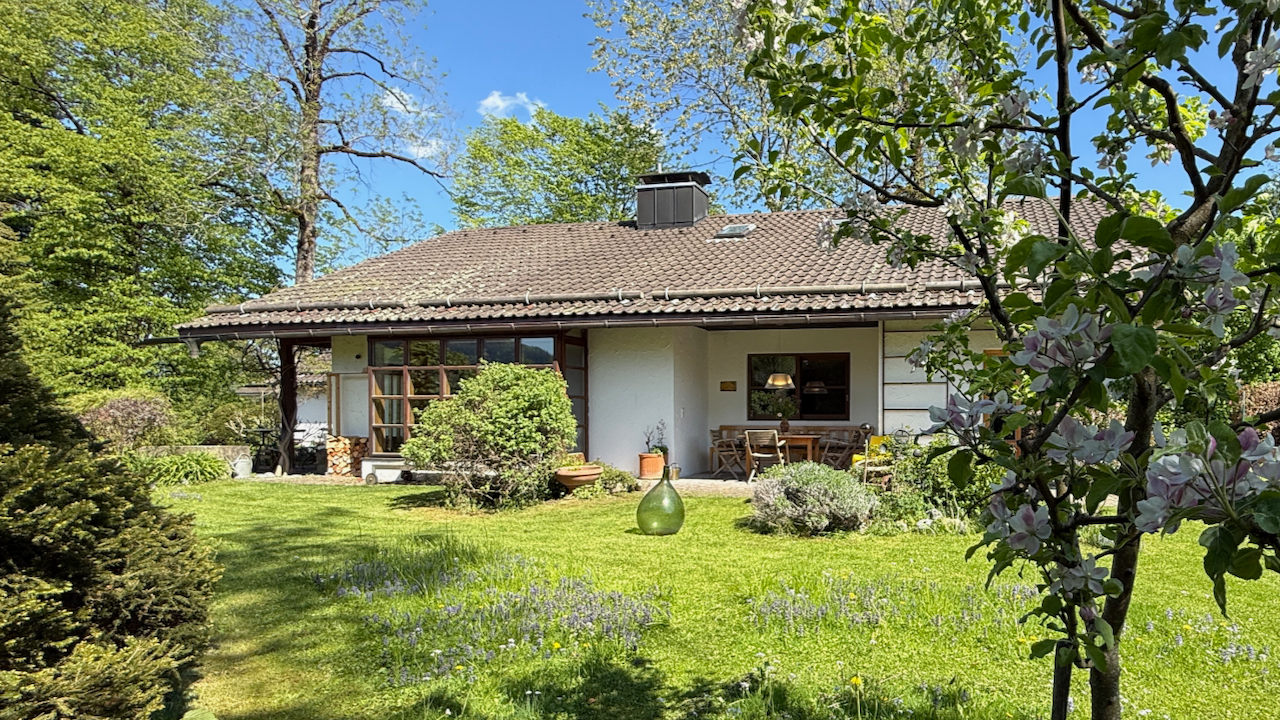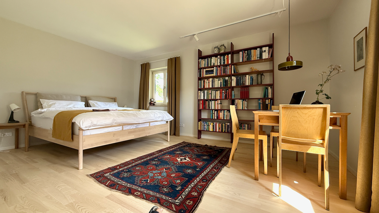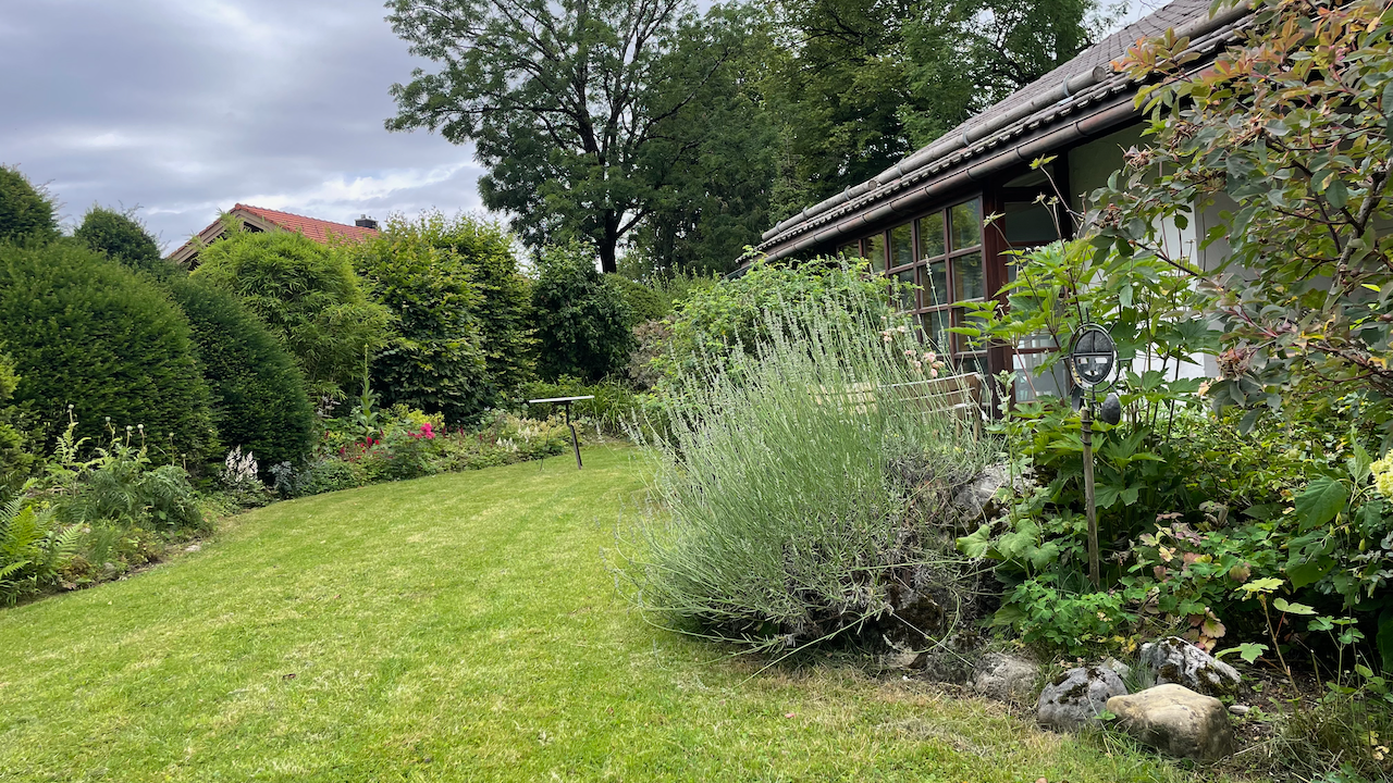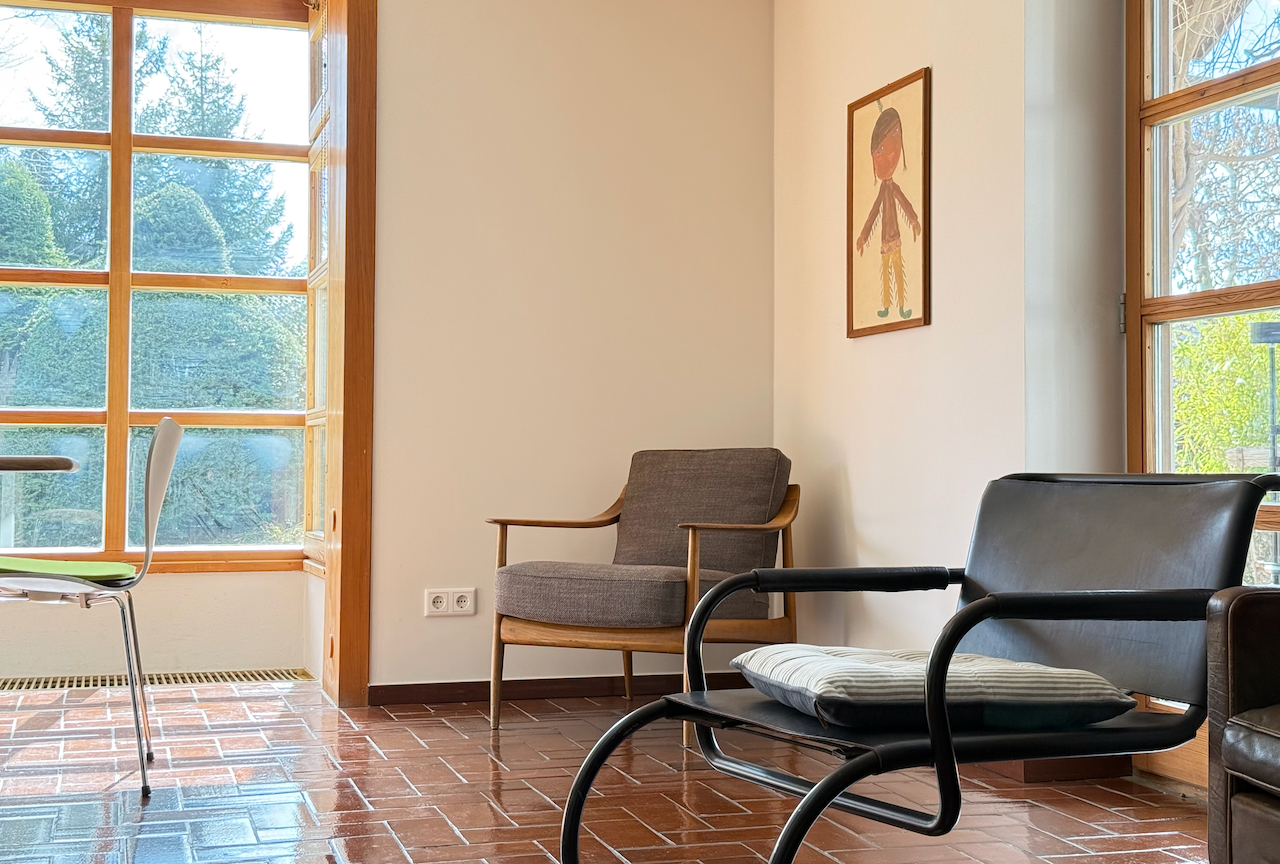 Das Mid-Century-Haus wurde 2024 behutsam von mir hochwertig saniert und umgestaltet. Es liegt im sonnigen oberen Ortsteil, 5 Min. vom Zentrum entfernt. Vermietet wird das ca. 100 qm große Erdgeschoss. Das helle und großzügige Wohnzimmer mit dem neuen Kachelofen und der voll ausgestatteten offenen Küche bildet das Herzstück. Die Kunstbibliothek lädt ein zum Lesen und Schauen. Der liebevoll gestaltete Garten schließt daran an. Im Sommer verschmilzt innen und außen. Die drei Schlafzimmer sind hochwertig eingerichtet, und bieten gleichzeitig Platz zum Arbeiten oder Rückzug. Das Haus incl. Bad ist barrierefrei. Es gibt noch ein separates WC. Eine Wallbox am kostenfreien Stellplatz ist vorhanden. WLAN ist selbstverständlich.