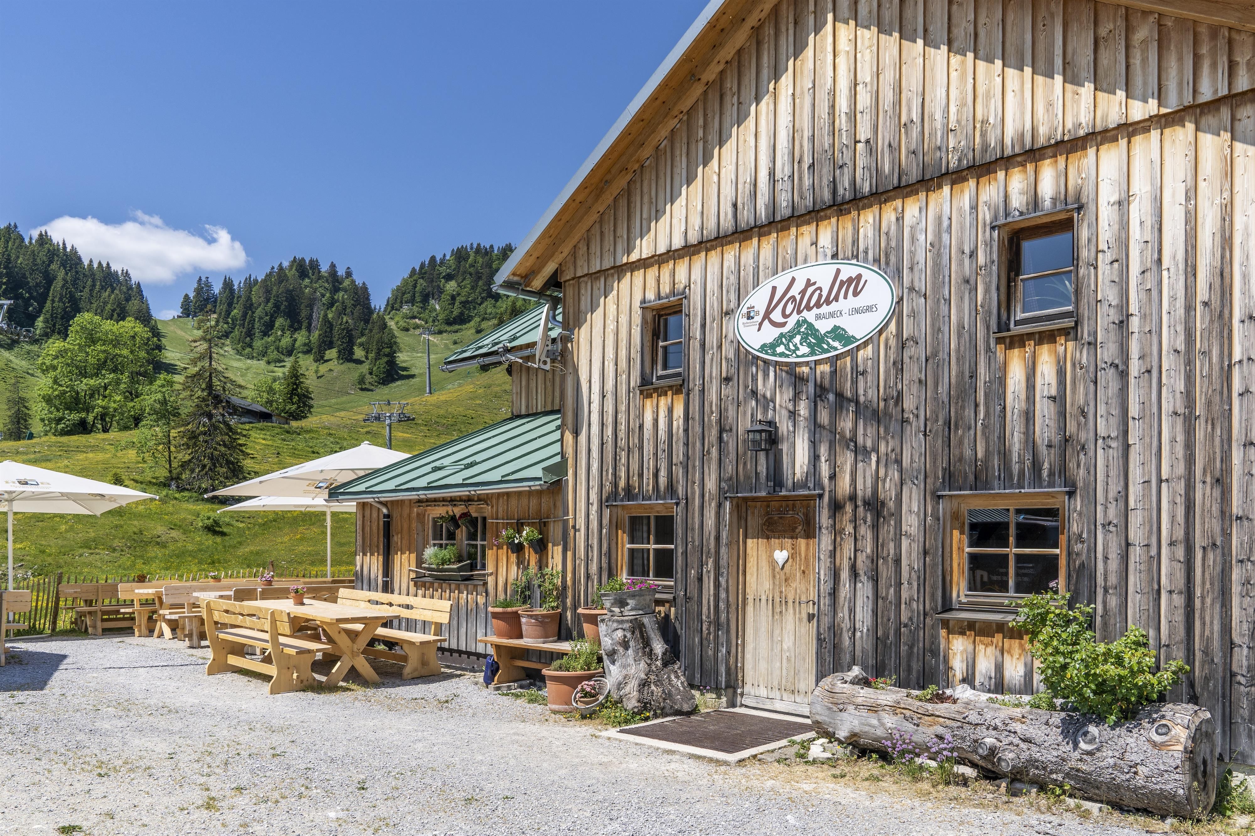 Die Kotalm am Brauneck ist ein beliebtes Wanderziel in idyllischer Lage auf halber Höhe zwischen Wegscheid und dem Brauneckgipfel.