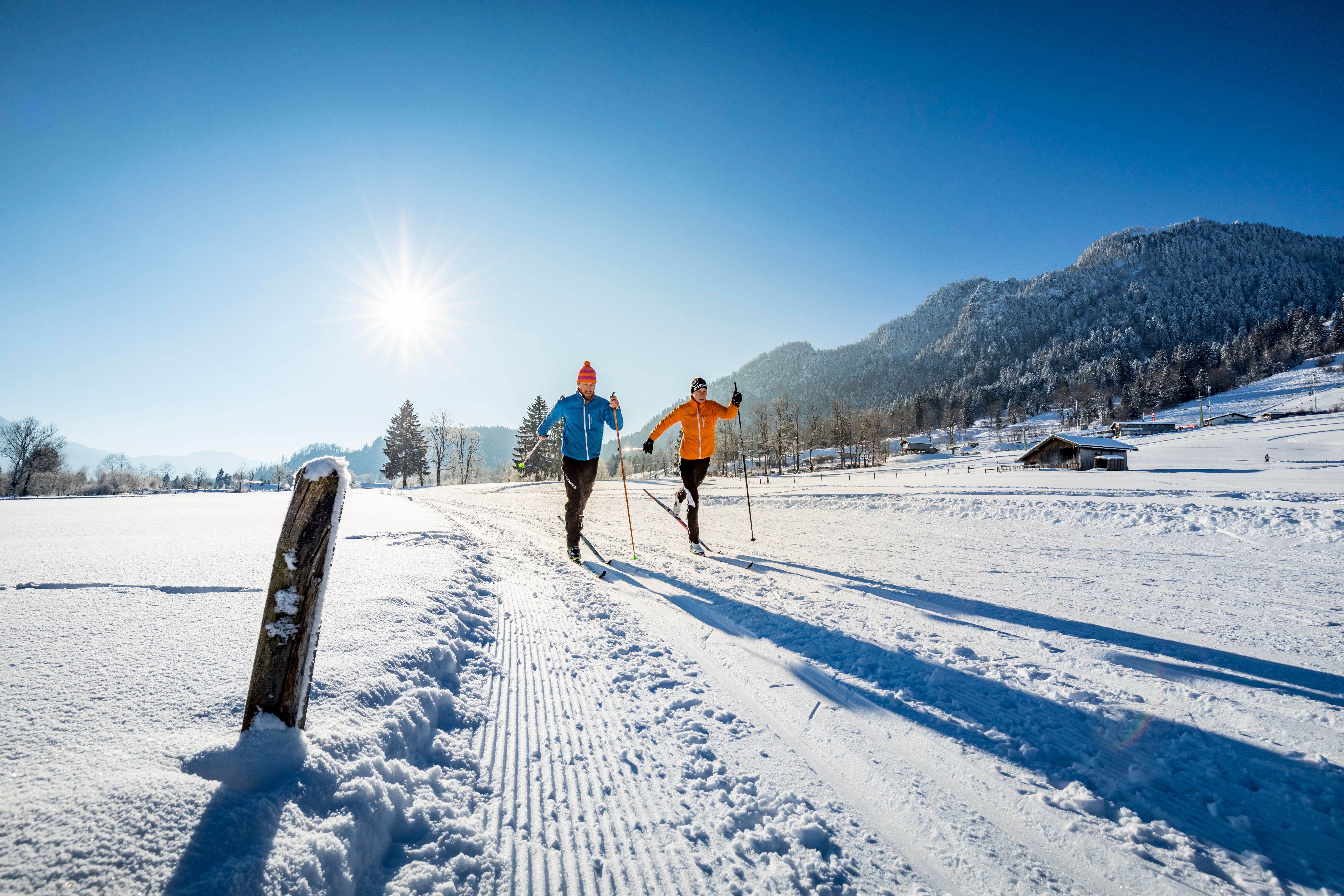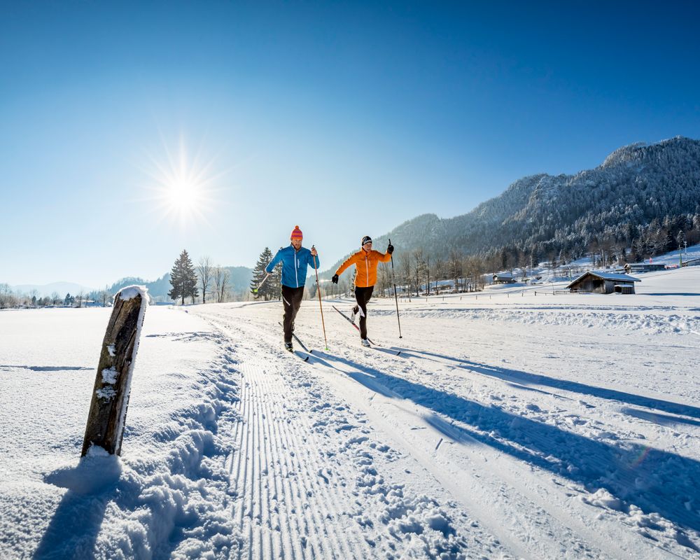Diese wunderschöne Klassische Loipe führt über Wiesen und durch die traumhaft verschneite Winterlandschaft von Lenggries. Der Runkurs ist eine mittelschwere Loipe mit immer wieder leichten Anstiegen und Abfahrten. Diese Strecke kann man bei Lust auf mehr, mit einer Schleife (2 km) verlängern. Die 5 km Loipe nach Schlegldorf startet am Loipeneinstieg bei den Gilgenhöfen. Zuerst verläuft diese Runde parallel zur 10 km Loipe. Hier führt die Loipe am Anfang geradeaus Richtung Brauneck. Danach kommen ein leichter Anstieg und die Strecke macht eine Rechtskurve, worauf eine kurze aber etwas steilere Abfahrt folgt. Weiter geht es immer wieder leicht bergauf und bergab über Wiesen und Felder. Bald erreichen Sie die Abzweigung zum 5 km Rundkurs. Die klassische und skating Loipe verlaufen hier parallel zueinander. Die Loipe verläuft überwiegend im flachen Gelände mit nur wenigen und ganz leichten Anstiegen. Die Rückfahrt erfolgt auf einer flachen Strecke, auf die zwei kurzen Schleifen folgen, die Sie zum Loipeneinstieg zurück führen.