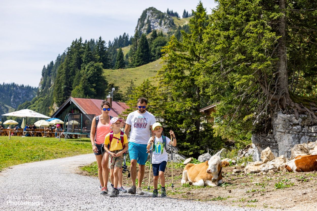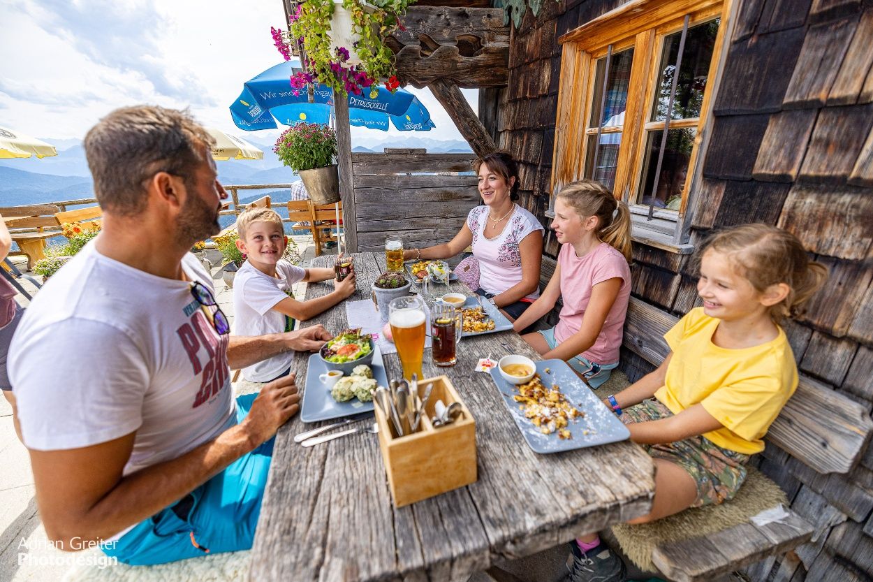 Nicht mehr für Kinderwagen geeignet: Von der Tölzer Hütte führt der Weg steil bergab, vorbei an der Quenger Alm, der Strasser Alm und dann steil ansteigend bis zur Stie-Alm mit Almkäserei (45 min.). Zurück geht es auf dem gleichen Weg.
